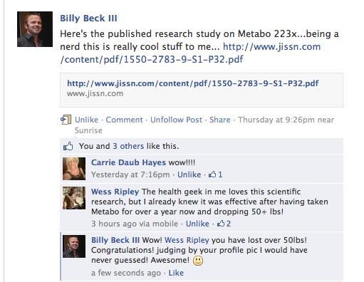 Read Wess Ripley's comment to Billy Beck regarding his 50+ pounds of weight loss.